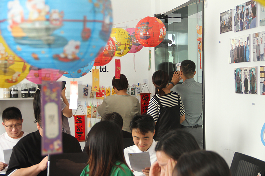 Organizirane su različite tradicionalne aktivnosti, poput rješavanja zagonetke fenjera i slikanja obožavatelja. Zrak je bio ispunjen smijehom tijekom ovih aktivnosti, ističući raznolike sposobnosti i skladno okruženje u timu Jiangsu Luming.